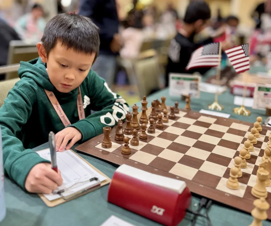 Kyle Qiyu Dong leads a pack of five players with 4½/5, and an additional 23 players trail the leaders by a half-point (Photo by Caroline King)