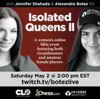 Isolated Queens I and II, US Chess Women events hosted on chess.com with twitch.tv/BotezLive to promote girls and women in chess during social isolation. Sponsored by Ian "Maprail Silverstone, Barbara and Richard Schiffrin and Open Field Media.