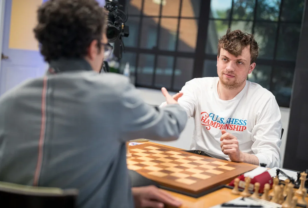 Today, Caruana takes the first move against Olympiad teammate GM Levon Aronian, and we’ll see what else Niemann has prepared as he plays the black pieces against GM Awonder Liang. Two other pairings see veterans face off: GM Sam Sevian versus GM Ray Robson and GM Leinier Dominguez against GM Sam Shankland.