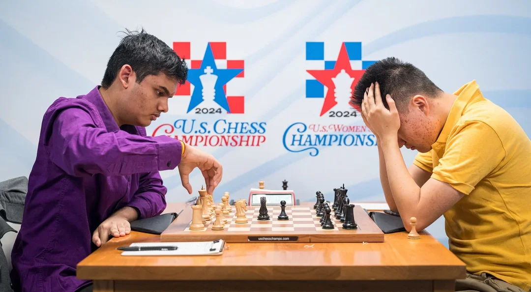 The other most intriguing match-up was between the reigning U.S. Junior champion, GM Christopher Yoo, and GM Abhimanyu Mishra, who happens to be the 2023 U.S. Junior champ. Mishra opted not to defend his title this past summer, while Yoo missed the 2023 edition of the tournament. What would happen when the two finally squared off?