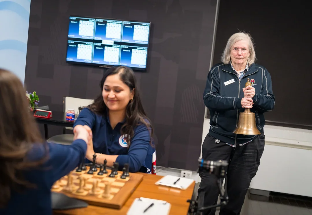 Today, two leaders square off as Atwell takes the white side against Yip. Tokhirjonova will also have the white pieces against Pourkashiyan. Full pairings and all games can be found here.