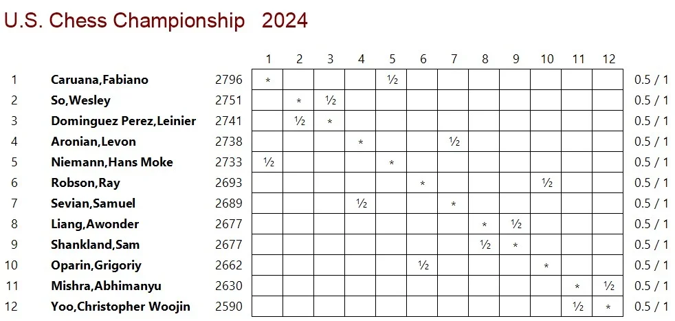 There won’t be any Fischer Prizes in this year’s U.S. Championship, as all six games ended in a draw, dashing everyone’s dreams of an 11/11 finish.
