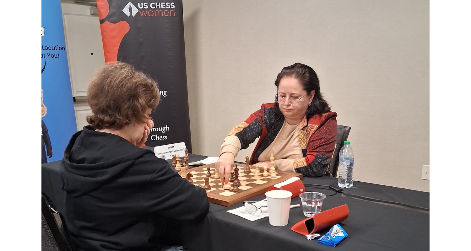Saturday began without a clear leader but ended with 2023 U.S. Senior Women’s Champion WGM Anjelina Belakovskaia a half point ahead of her nearest competitor, WFM Chouchanik Airapetian.