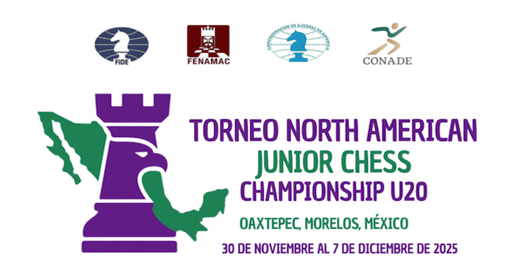 Players from the USA delegation won gold medals in all three events of the North American Junior Chess Championship Under-20, held from Nov. 30 through Dec. 7 in Oaxtepec, Morelos, Mexico. Nine Americans made the trip, and 53 players total competed.