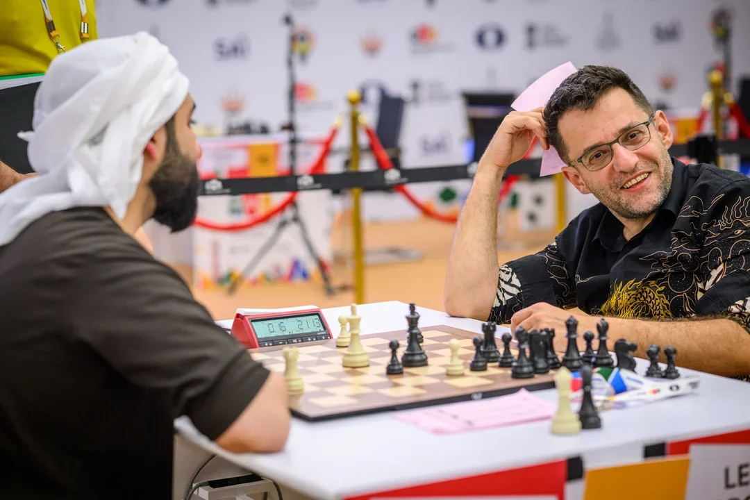 It was business as usual for Aronian against GM Salem Saleh (UAE), with Aronian reaching a messy position with mutual chances after taking some risks as Black in a quiet opening to begin their match.