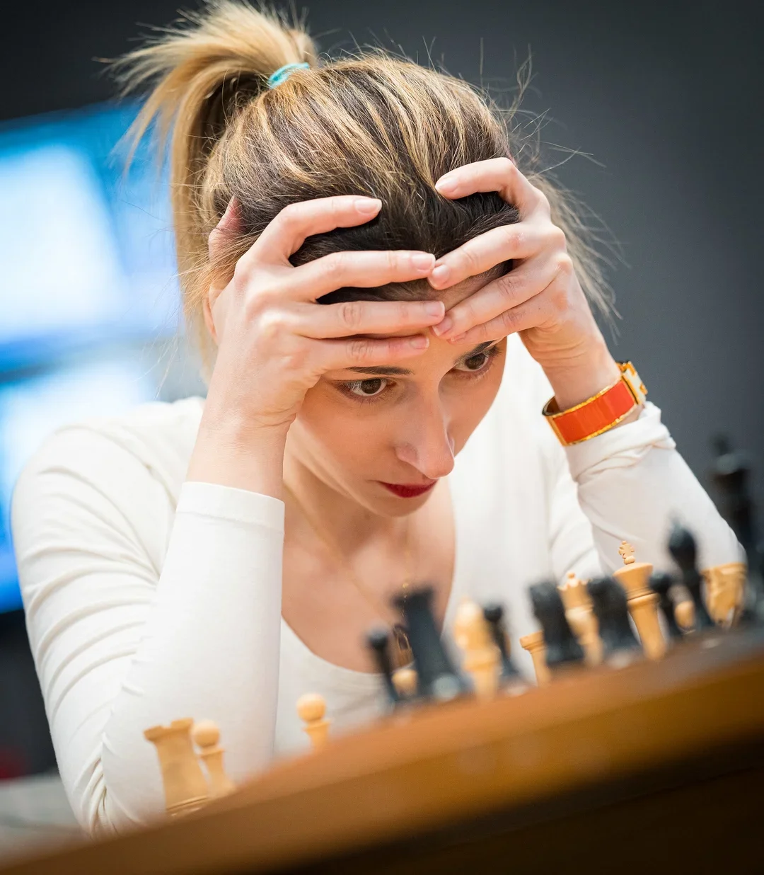 The final decisive game was IM Alice Lee's complicated skirmish against GM Irina Krush in one of many intra-Olympiad team battles.