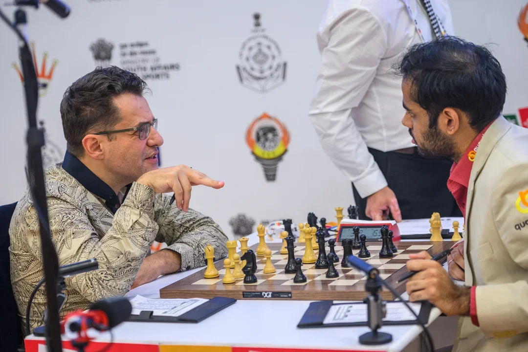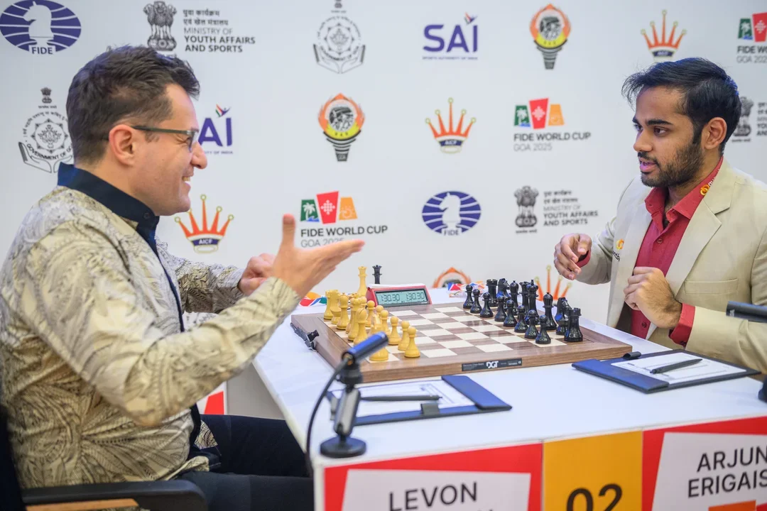 After a quiet first game, Aronian created a complicated position with mutual chances in the return game. But, before the time control, one tactical oversight gave Arjun the decisive blow: