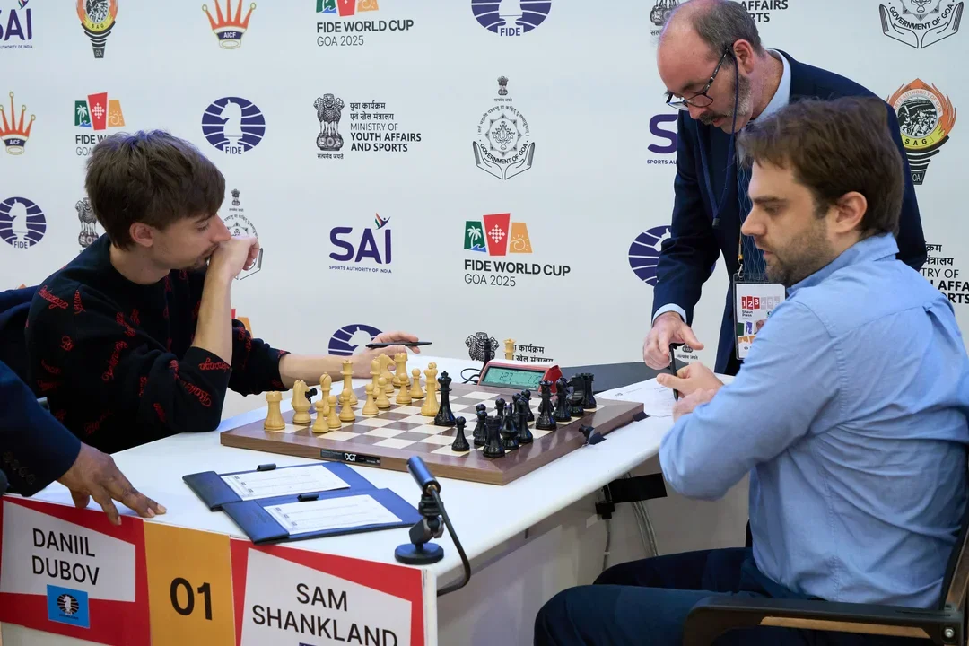 In the first classical game, Shankland found himself under some pressure from Dubov, but he equalized nicely.