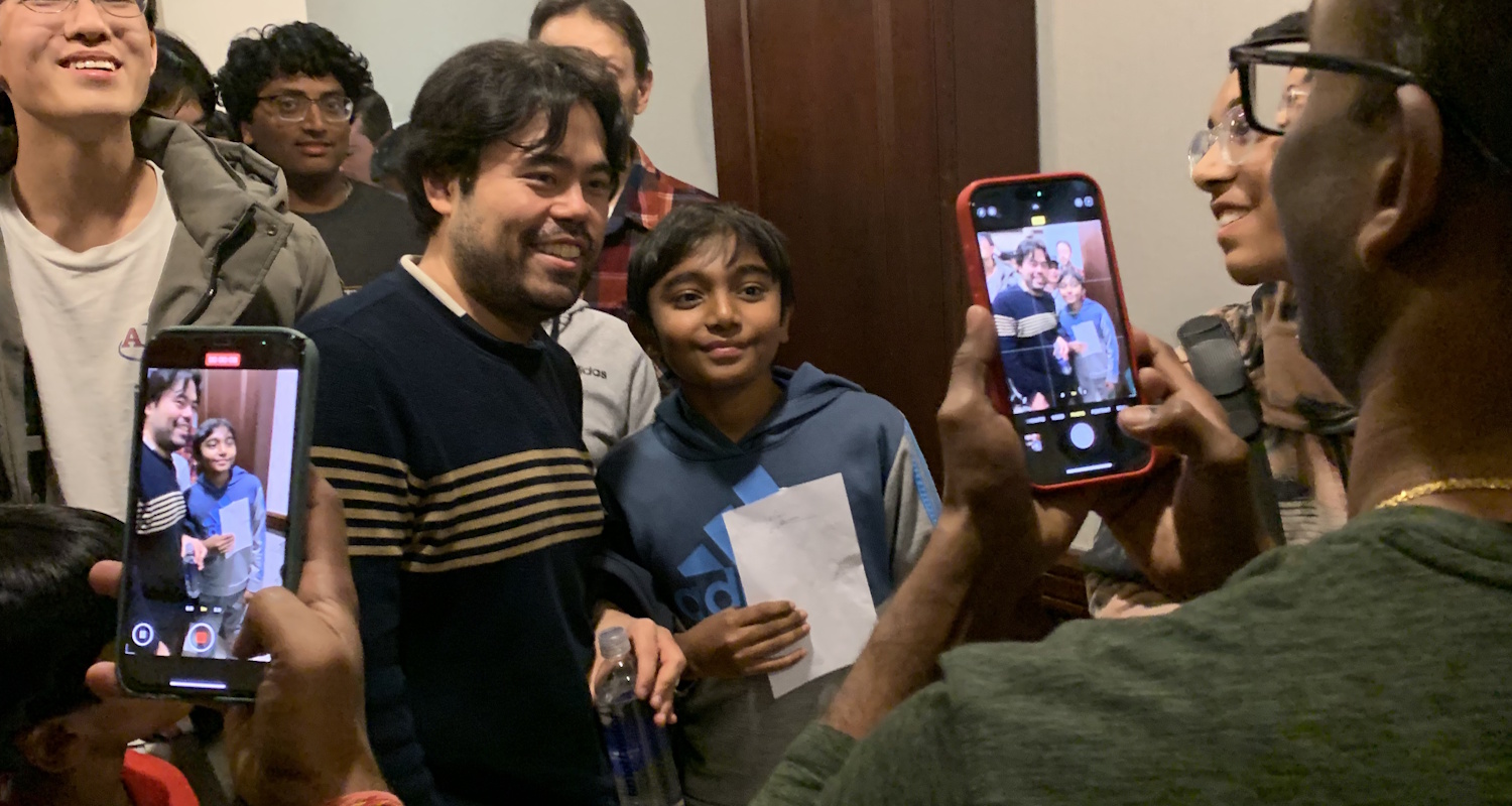 He managed to lay hands on one (and later three more were found for the other top boards), but with a trip to India coming up the day after the tournament, he probably had other plans. Still, he thought “I didn't have any issues with running it,” Dommalapati said, crediting high schooler Ananya Ananth for helping out; “it's just the time. But it all worked out. Everybody wants to come and play, and they want to say hi to him. So I'm happy to do it.”