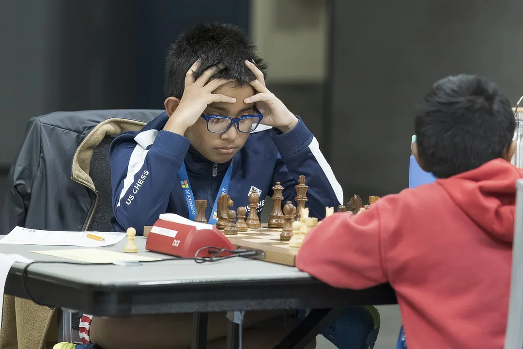 Connor Wang (NY) is the lone 5/5 player in the 8th Grade section, ahead of three players with 4½/5. Of them, Washington’s Vihaan Jammalamadaka is the highest-rated, thanks in part to his escape below: